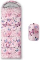 - SUITABLE:The sleeping bag can be used for 3 Seasons.SIZE:80*230cm Suggenal extreme temperature: 41 ℉ -77 ℉.Applicable in a variety of scenarios,such as Travel camping pajamas party,It’s very suitable for you to travel with your children.Half-circle hood with adjustable drawstring,which can keep you warm and prevent your humidity