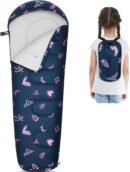 - Size: kids sleeping bag measures 70 x 28 x 22 inches with a wide-top and narrow-bottom design, providing excellent warmth and ease of use. It is specially designed for children aged 4-12 years and teenagers under 5’3″ tall